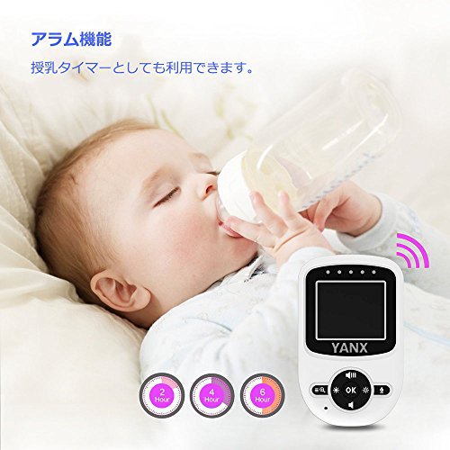 YANX ベビーモニター 赤ちゃん専用の防犯カメラ ボイスセンサー搭載 双方向通話 子守唄 暗視撮影 音声に起動可能 温度表示機能 ズームレンズ ledライト付き 通信の設定不要 HD高画質 年寄り介護 見守りモニター 出産祝い (2.4インチ)