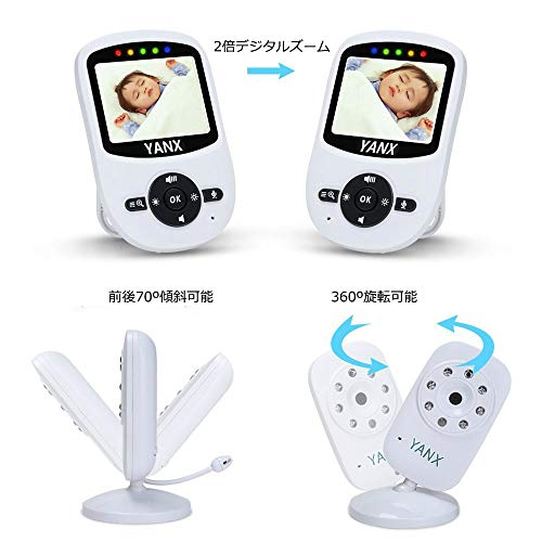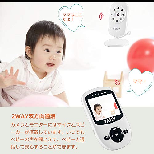 YANX ベビーモニター 赤ちゃん防犯カメラ 遠隔監視カメラ ボイスセンサー搭載 双向通話 子守唄 暗視撮影