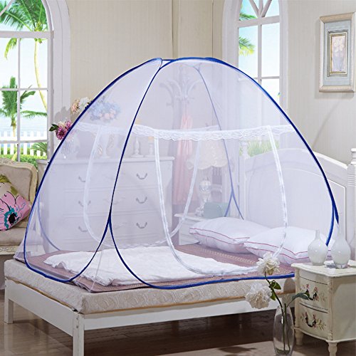 蚊帳 ワンタッチ ベビー 大人 兼用 幅180cm 長さ200cm さまざまなサイズ 2色から選べる 底付き モスキートネット 虫除け 蚊よけ ムカデ対策 ワンタッチ蚊帳 折りたたみ 密度が高い ダブルドア設計 かや(omid) (ブルー, 長200*幅180*高150cm)