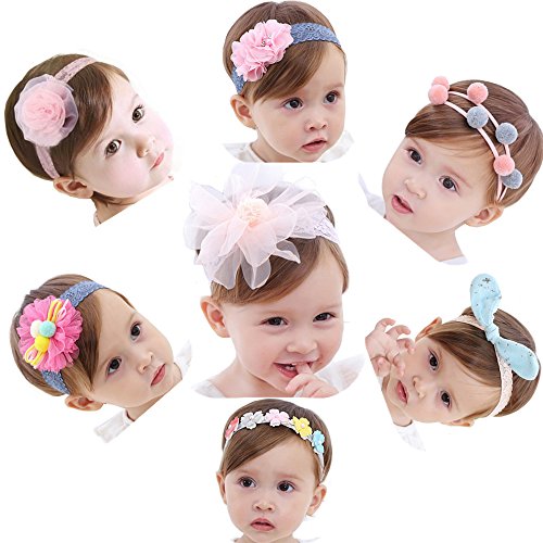 YCKeAi 7点セット ベビー ヘアアクセサリー ヘアバンド 髪飾り 髪留め カチューシャ 赤ちゃん ベビー 花 かわいい 出産祝い 誕生日 プレゼント (セット-2)