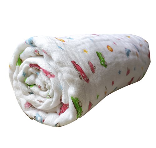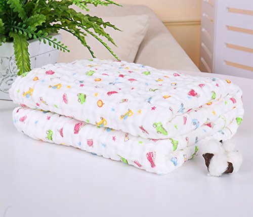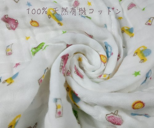 6重 ガーゼ ベビー バスタオル ガーゼケット 赤ちゃん タオルケット 保育園 出産祝い 110x110cm (車, 110x110cm)
