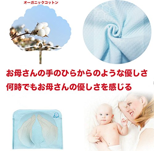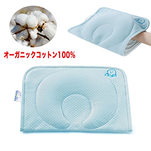 赤ちゃん 枕 ベビーまくら 新生児 授乳枕 通気性 汗取り オーガニックコットン100% (ライトブルー)