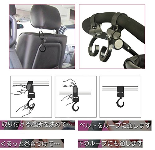 - ★多機能荷物フック、ベビーカーの他、車のヘッドレスト、スーツケース、自転車のハンドル部分、パイプ家具、パイプヘッド、キッチン回り、カートなどに使えます。
