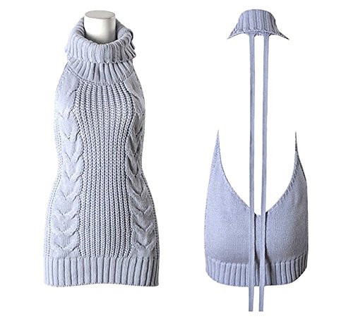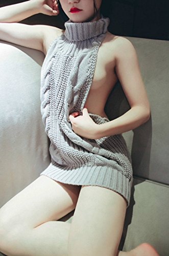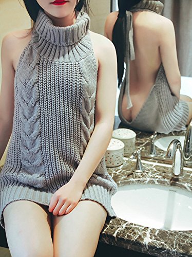 YE-MS レディースセーター セクシー 背中 開き バックレス ニット チュニック ハイネック ワンピース バックリボン セクシー
