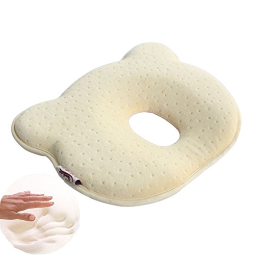 - 『頭の形を矯正し』:そして赤ちゃんの頭はまだ非常に柔くく少しのことで、形が変わってしまいます。なので、この眠っている時の頭への負担をなるべくかけないのが、頭を丸く育てる秘訣となります。中央部をドーナツ形状にし、独自のメモリーフォームを採用する事によって赤ちゃんの頭をしっかりと支え、負担をかけません。医学博士が推薦する、赤ちゃんを丸い頭で育てるために設計された小熊型枕です。Made in china