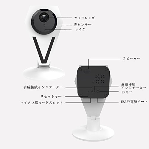 - 音声双方向、動体感知警報: スピーカーとマイクが搭載され、赤ちゃんと話せる。そして、赤ちゃんの動きを検知すると、自動的に録画し、携帯へ通知する。(録画の時、SDカードが必要)