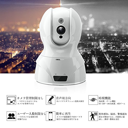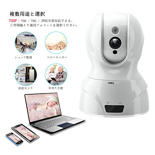 COSANSYS ベビーモニター ワイヤレス ネットワークカメラ 音声双方向 暗視撮影 動体感知警報 遠隔操作 100万画素 スマホで確認 赤ちゃん カメラ 監視 ウェブカメラ