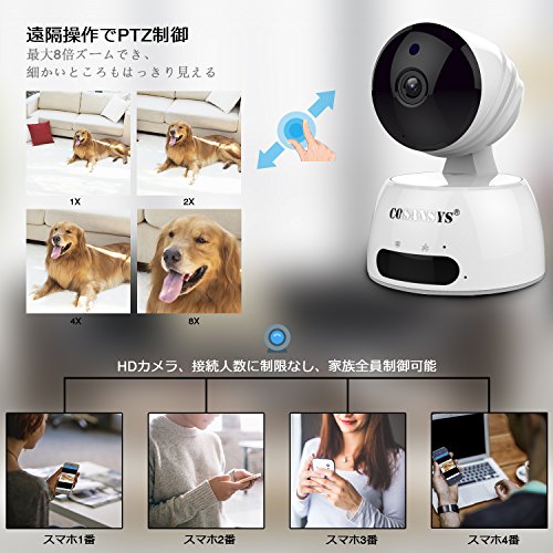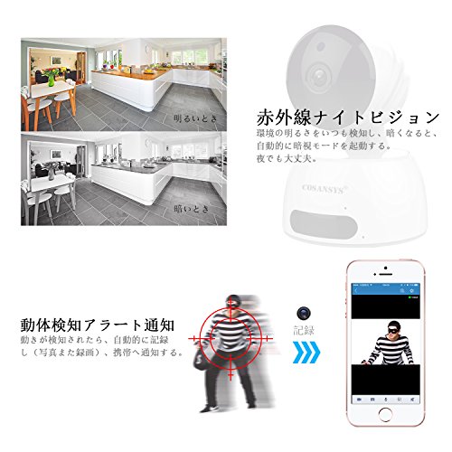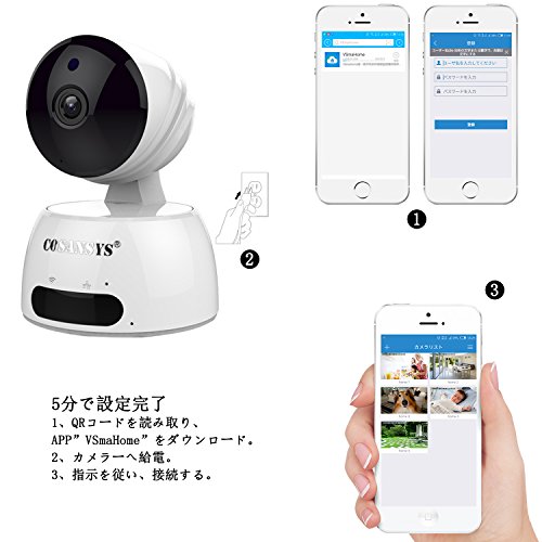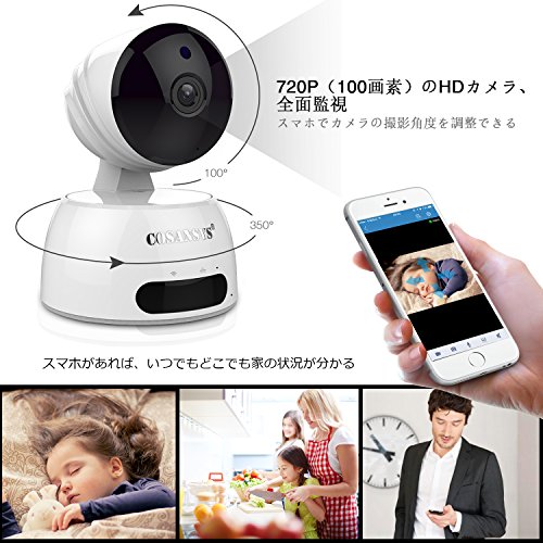 COSANSYS ベビーモニター ネットワークカメラ ワイヤレス IPカメラ スマホ対応 暗視 音声双方向 wifi IP WEB カメラ ペット 子供 見守り 720P 100万画素