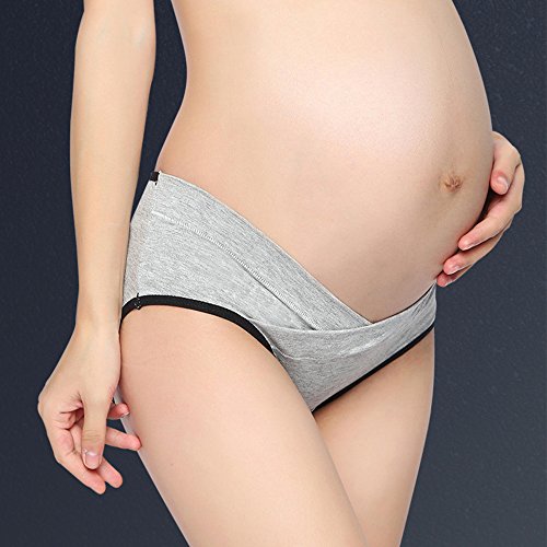 YING LAN マタニティ ショーツ 3枚セット 産前 産後 妊婦用 下着 ローライズ パンツ ボーダー グレー ブラウン 3枚組