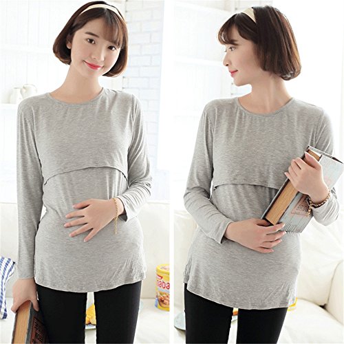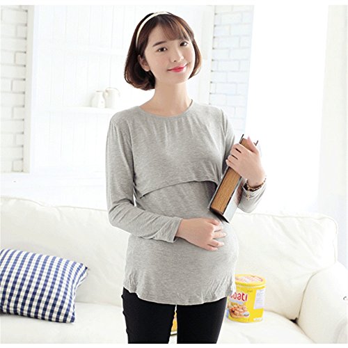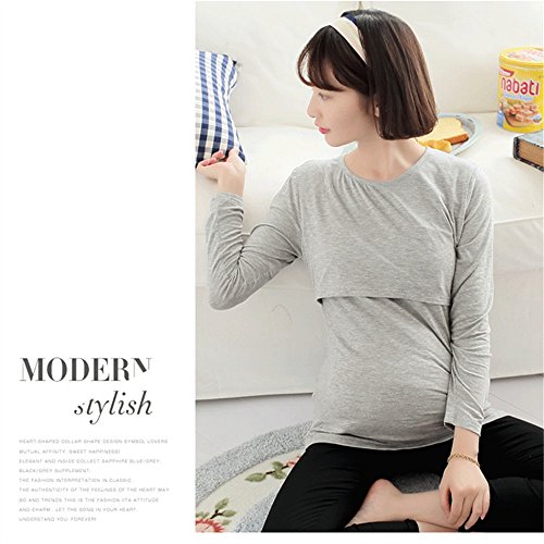 YING LAN 妊娠さん 産前 産後 妊婦 マタニティ ソリッドカラー 授乳 Tシャツ モーダル 長袖 シャツ 暖かい グレー