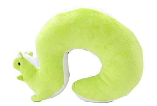 ふわふわネックピロー U字枕クッション枕 可愛いリス型 (緑)