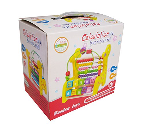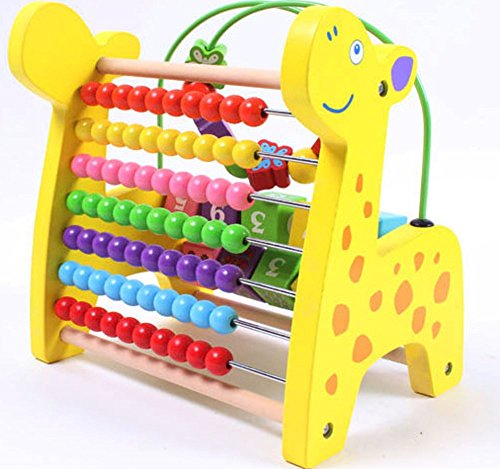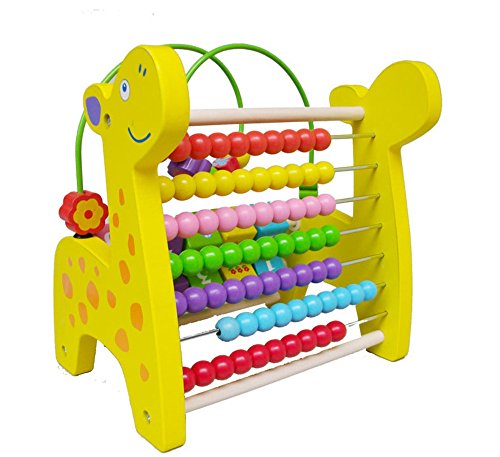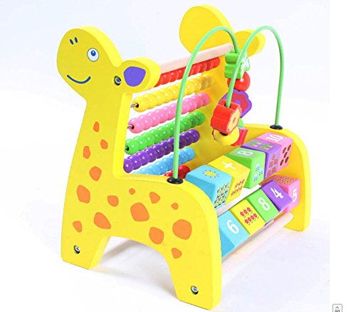 木のおもちゃ キリン形 ビーズコースター ビーズメイズ 玉そろばん 幼児 知育玩具