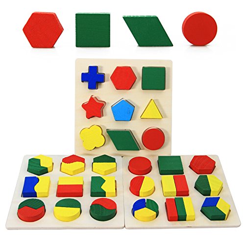 木のおもちゃ 幾何認知 形合わせ はめ込み パズル 幼児 知育玩具 早期教育 3点セット