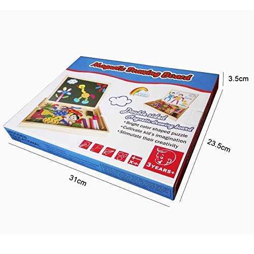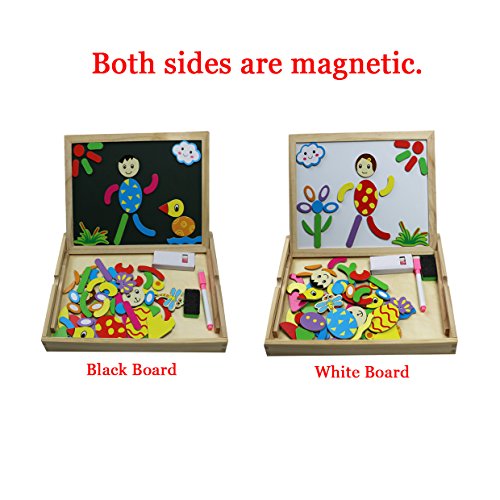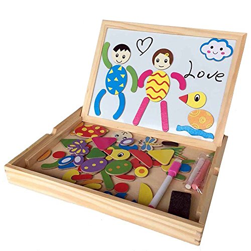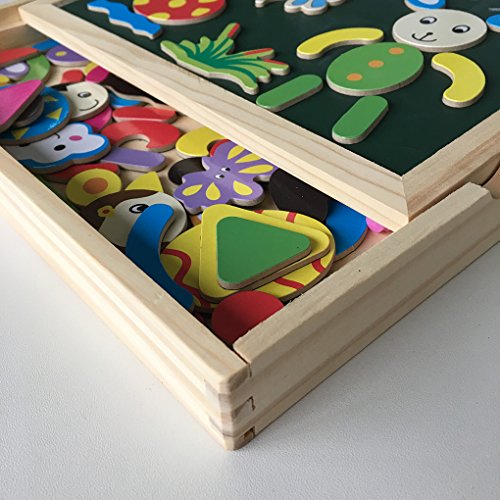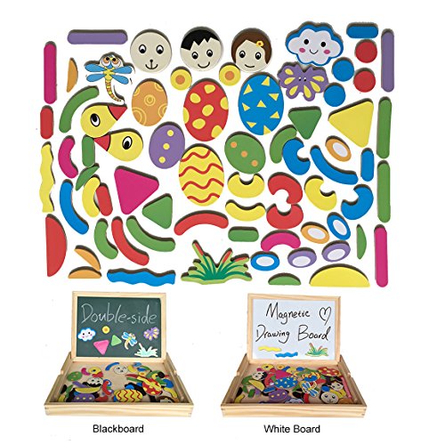 木のおもちゃ お絵かきボード ホワイトボード 黒板 マグネット パズル 幼児 知育玩具 約70枚ブロック付き