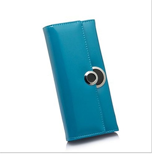 YIYA 選べる 6 色 レディース 長財布 花柄 ボタン おしゃれ かわいい キルティング 加工 ラウンドファスナー 小銭入れ PU レザー 女性 ロング ウォレット (靑)