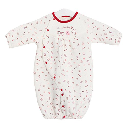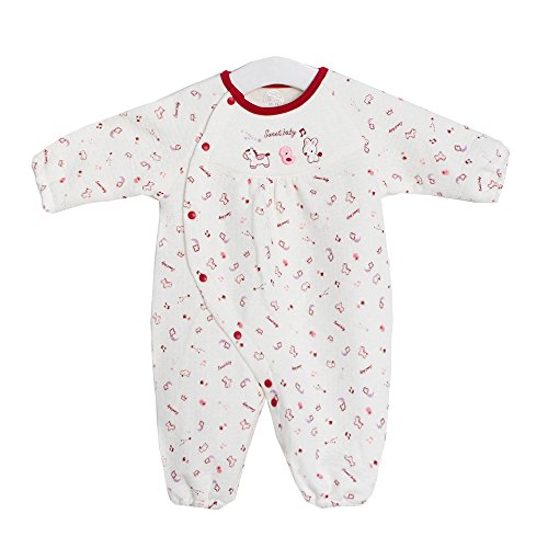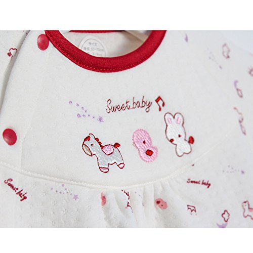 TopCotton 新生児服 女の子 肌着 ツーウェイオール ふんわり柔らかい 長袖 出産祝い コットン 50-70CM(0-6ヶ月) (レッド)