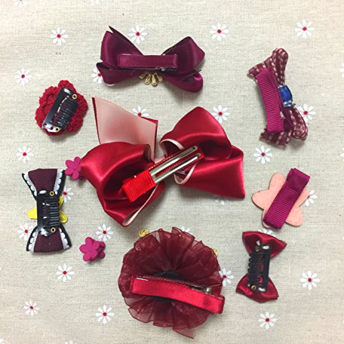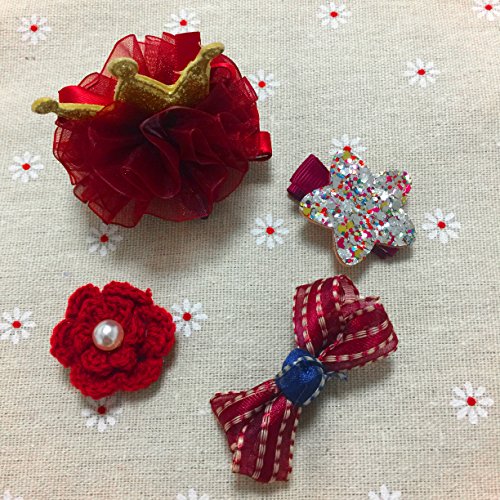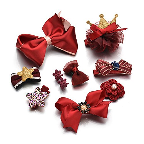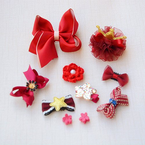 ヘアピン アクセサリー (10個) 子供用 髪飾り 出産祝い ギフト 王冠 可愛い ヘアクリップ リボン ヘアピン 子供も通用 キッズ 髪留め ヘアバンド お宮参り 誕生日 パーティ 記念日 イベント 写真撮影 (レッド)