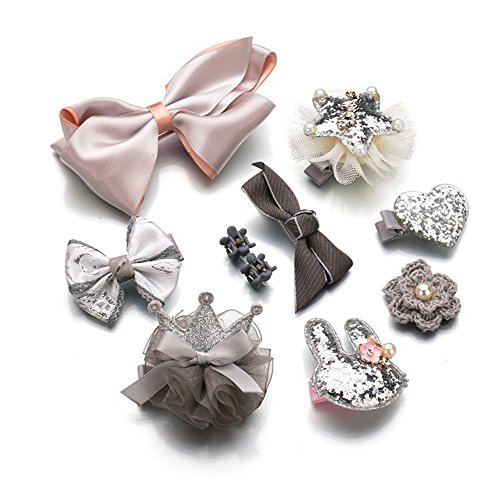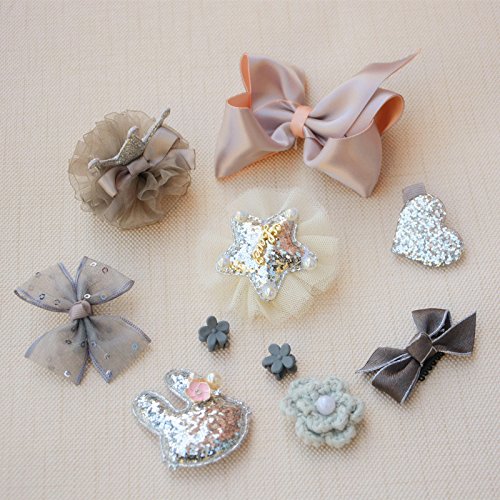 ヘアピン アクセサリー (10個) 子供用 髪飾り 出産祝い ギフト 王冠 可愛い ヘアクリップ リボン ヘアピン 子供も通用 キッズ 髪留め ヘアバンド お宮参り 誕生日 パーティ 記念日 イベント 写真撮影 (グレー)
