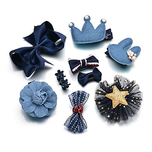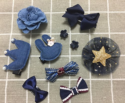 ヘアピン アクセサリー (10個) 子供用 髪飾り 出産祝い ギフト 王冠 可愛い ヘアクリップ リボン ヘアピン 子供も通用 キッズ 髪留め ヘアバンド お宮参り 誕生日 パーティ 記念日 イベント 写真撮影 (ネイビー)