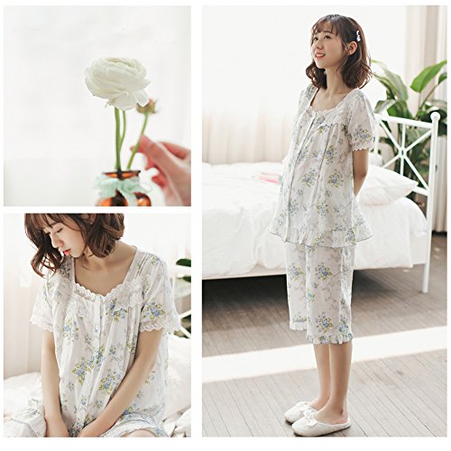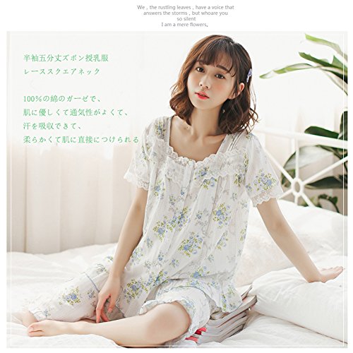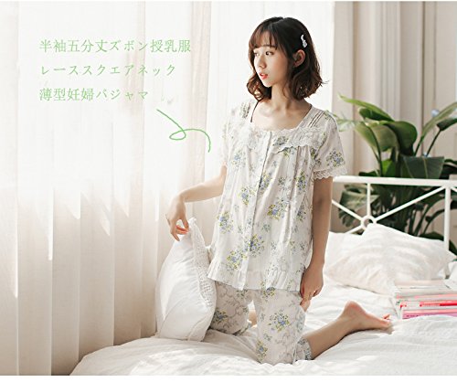 マタニティ パジャマ 夏 授乳服 妊婦服 前開き 授乳パジャマ 半袖五分丈ズボン 授乳口付き 入院 出産準備 産前産後 妊娠中 ルームウェア (ブルー 蓝, M)