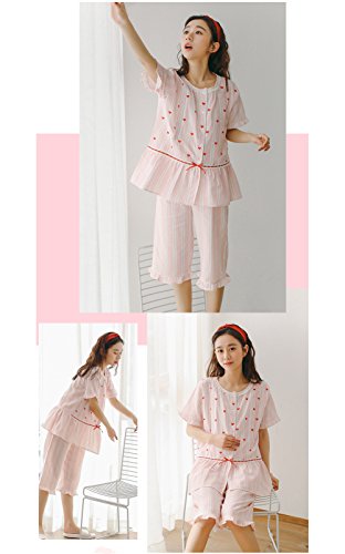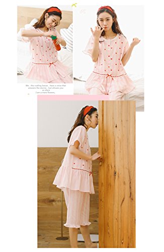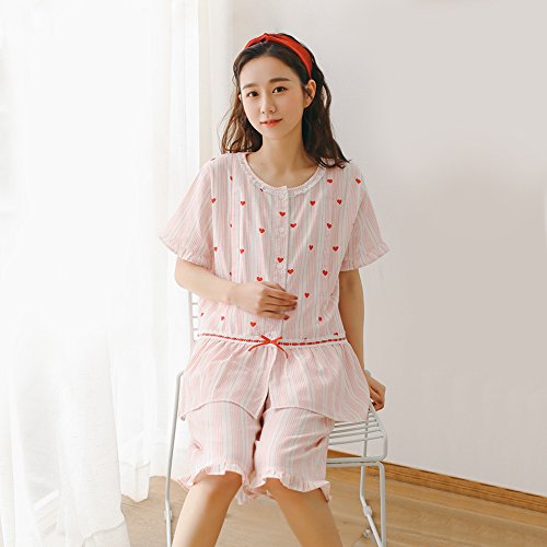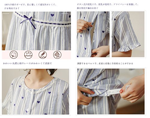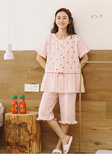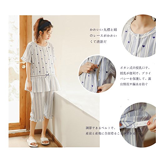 マタニティ パジャマ 夏 授乳服 前開き 妊婦服 半袖五分丈ズボン 薄型授乳 パジャマ 授乳口付き 入院 出産 準備 産前産後 妊娠中 ルームウェア (ピンク 粉, L)