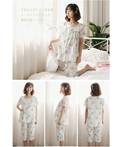 マタニティ パジャマ 夏 授乳服 妊婦服 前開き 授乳パジャマ 半袖五分丈ズボン 授乳口付き 入院 出産準備 産前産後 妊娠中 ルームウェア (ブルー 蓝, L)