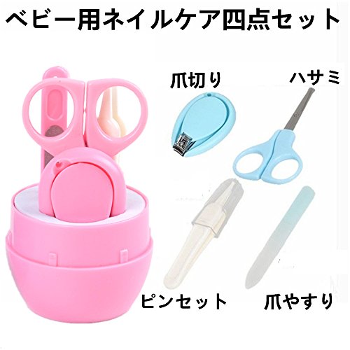 ベビー爪切り 爪きりセット 爪やすり 赤ちゃん ハサミ つめ・鼻・髪のおていれにグルーミングキット 3ヵ月から対象 三色選び (ピンク)