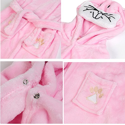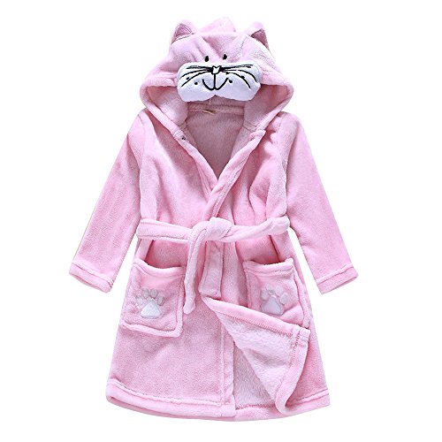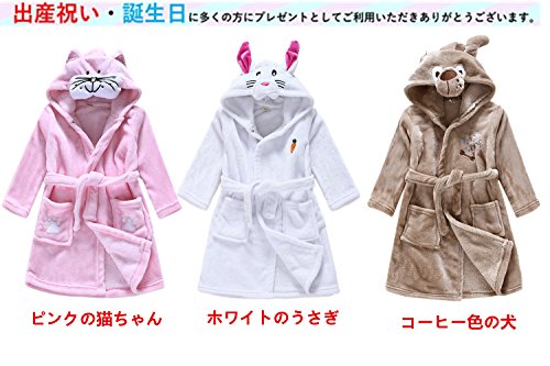 ベビー バスローブ タオル ポンチョ キッズ パジャマ 子ども用 ガウン ルームウェア バスポンチョ フード付き 柔らかい 暖かい 可愛い模様飾り 静電気防止 部屋着 ポンチョ プレゼント ギフト (高さ:100CM, ピンク 猫ちゃん)
