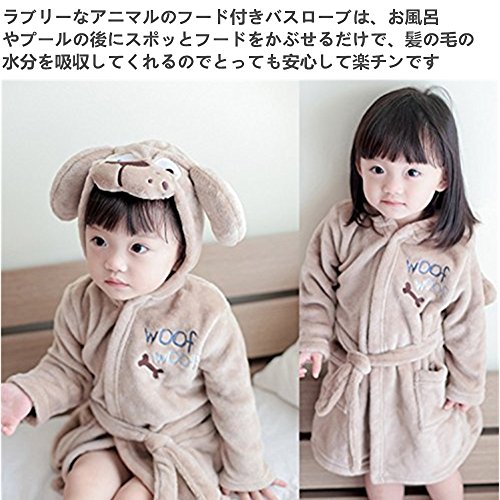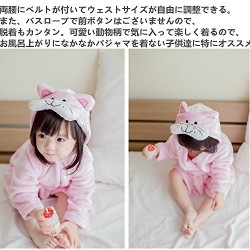 - 両腰にベルトが付いてウェストサイズが自由に調整できる。また、バスローブで前ボタンはございませんので、脱着もカンタン。可愛い動物柄で気に入って楽しく着るので、お風呂上がりになかなかパジャマを着ない子供達に特にオススメ♪