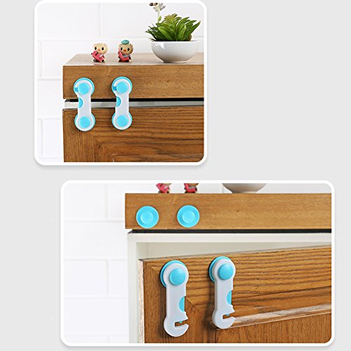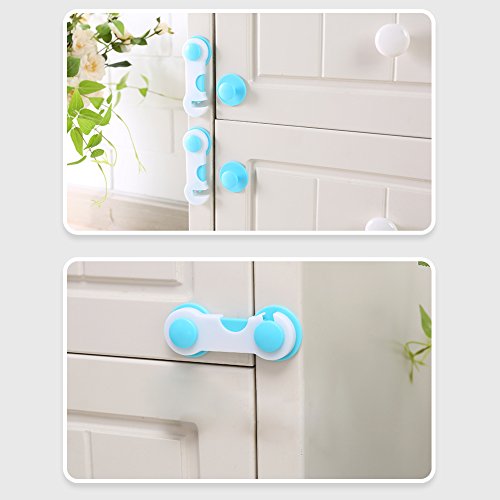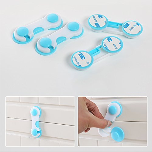 キャビネットロックベビー安全ロック安全子Super Strong 3 M Adhesive forキャビネット&引き出しドアなし、必要なツールまたはドリル10個by yoofoss ブルー