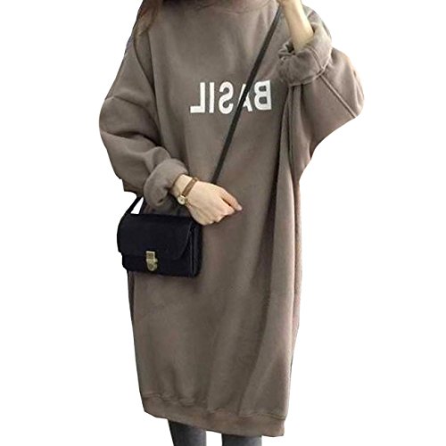 KLU レディース トレーナー ゆったり ロング 裏起毛 ワンピース 着やせ 体型カバー (M, グレー)