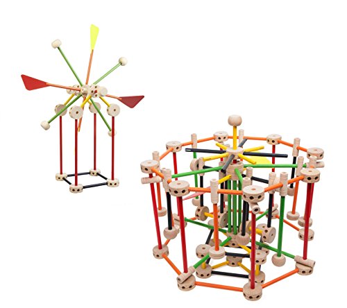 - 104パーツ、5種類の異なる長さのスティック、5種類の異なる形状の連結パーツ、2種類のフラッグパーツを使い想像力を働かせ立体を作り上げます。