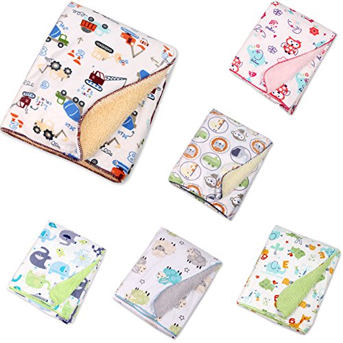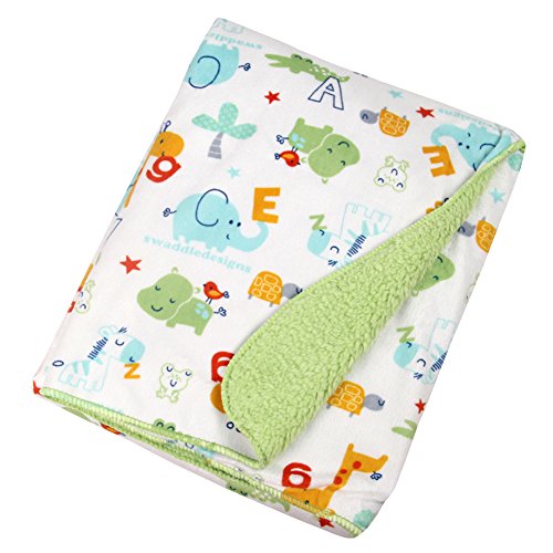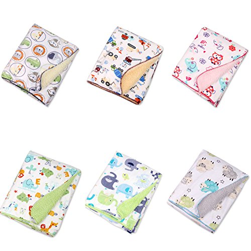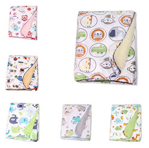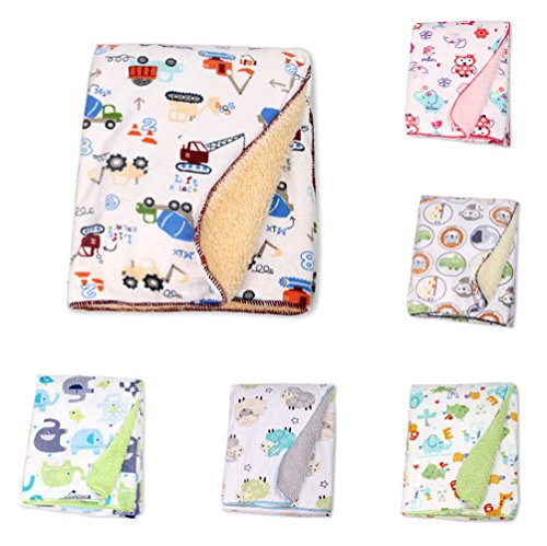 ベビーダブルレイヤー暖かい柔らかいフリースブランケットアニマルプリントおくるみ寝具 (緑の背景の動物)