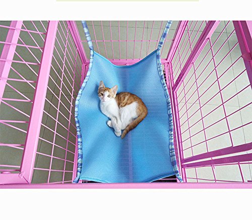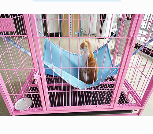 猫 ハンモック 猫 ハウス ペット用品 通気性 取り付け簡単 フック付き 春夏秋冬 猫 兎 小型犬 小動物用 宠物用品 (大(50×60cm), 青)
