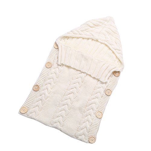 新生児の冬の 受信毛布 綿スワドルラップ 寝袋 写真の小道具 ボタンフード付きブランケット (ホワイト)