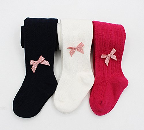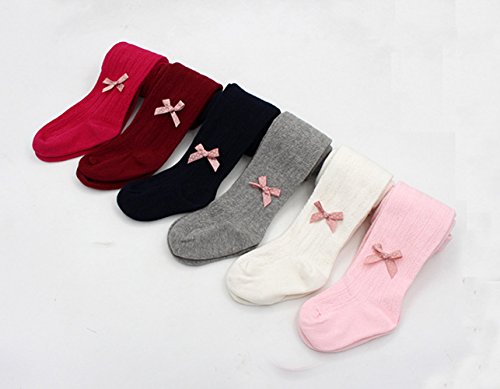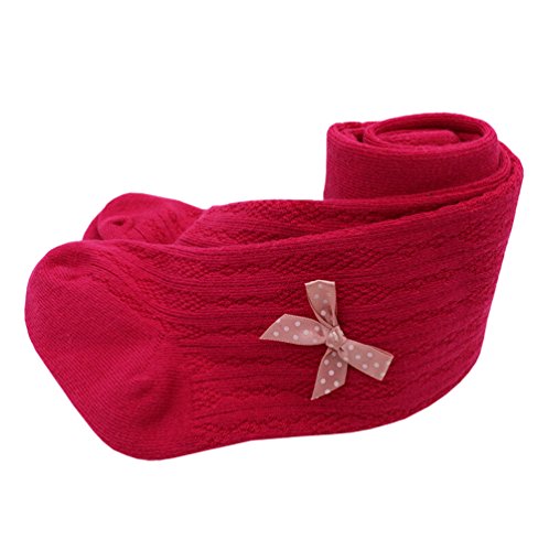 かわいいベビーキッズガールズコットン靴下パンストちょう結びソックスストッキング・タイツパンツを温めます (M(1-2歳), ローズ)