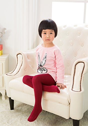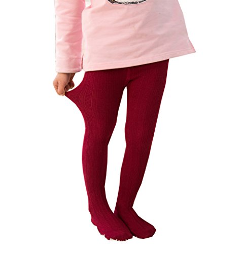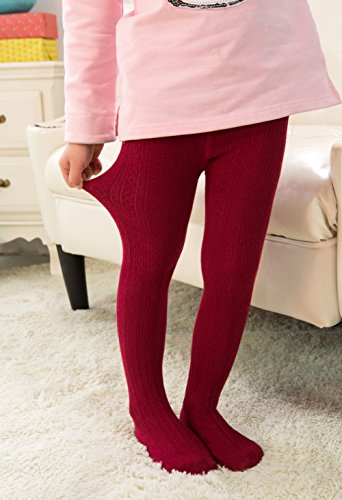 ベビー キッズ綿 キャンディーカラー タイツ レギンス パンスト (2-4歳, ワインレッド)