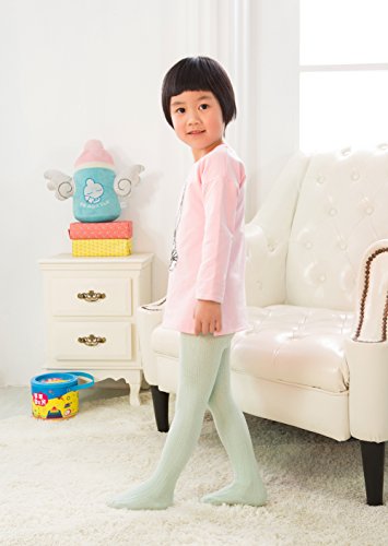 ベビー キッズ綿 キャンディーカラー タイツ レギンス パンスト (5-6歳, 薄緑)