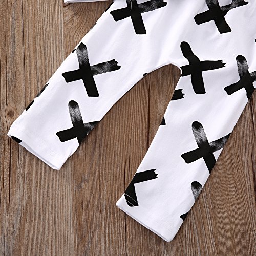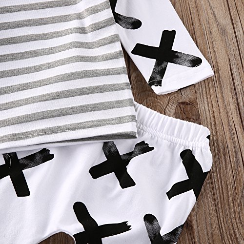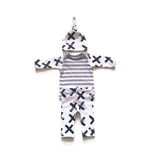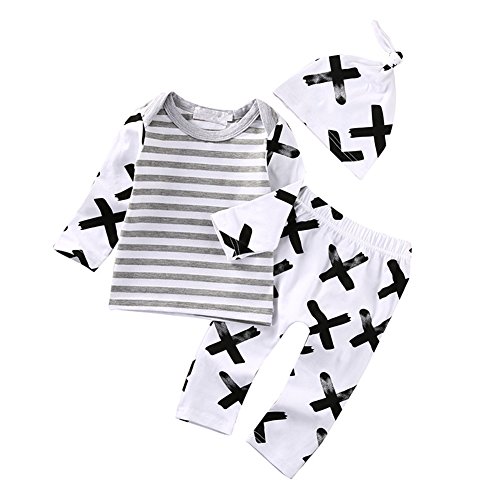 - "X"プリント服、ストライプ ロンパー、ロングパンツ、帽子