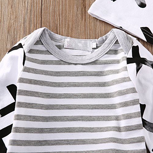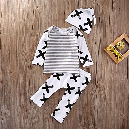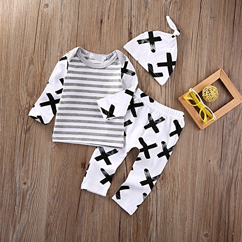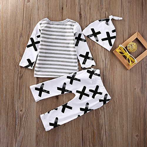 3pcs /セット新生児の少年少女長袖ストライプトップス手紙プリントロングパンツの帽子の服を (6-12ヶ月)