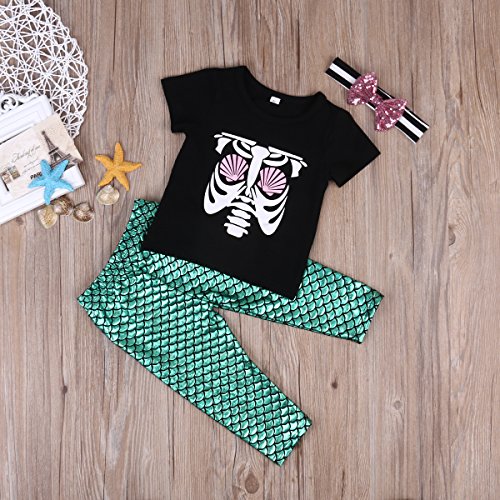 ベビー 男の子 女の子 夏の服 Tシャツ ズボン ヘアバンド 3点セット 半袖 人魚の服 ファション カコイイ 快適 大人気 (12-18ヶ月)