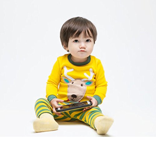 ベビー 男の子 女の子 鹿の服 Tシャツ ズボン 2点セット 長袖 ストライプ服 ファション カコイイ 快適 大人気 (3-4歳)