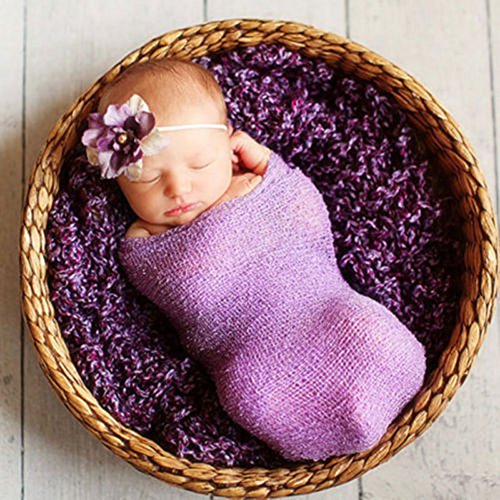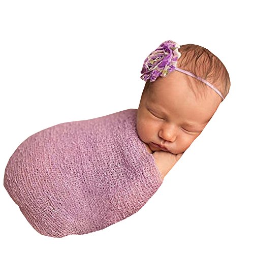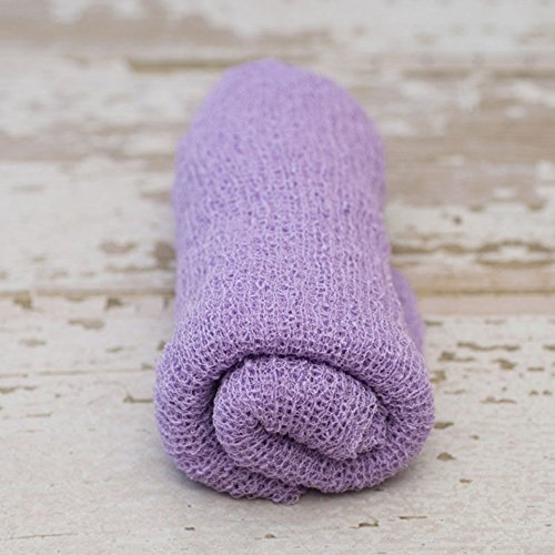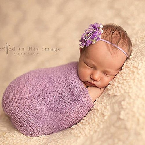 新生児のかぎ針編みのニットコスチューム写真の小道具の衣装ストレッチラップおくるみ毛布 (ライトパープル)