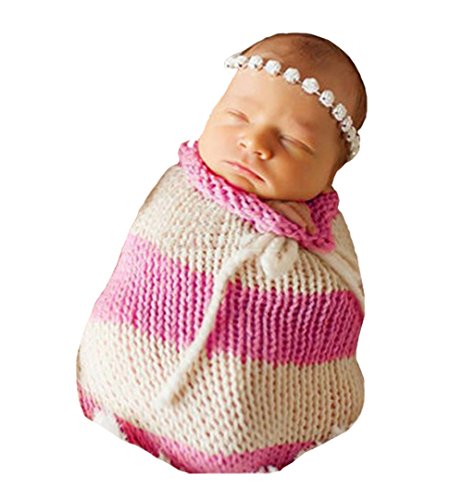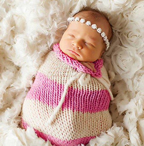新生児の赤ちゃんかぎ針編みのニット写真の小道具の衣装衣装寝袋ぬいぐるみ毛布 (ピンク&ホワイト)