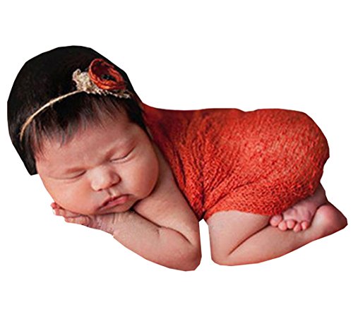 新生児のかぎ針編みのニットコスチューム写真の小道具の衣装ストレッチラップおくるみ毛布 (オレンジレッド)