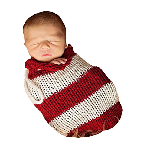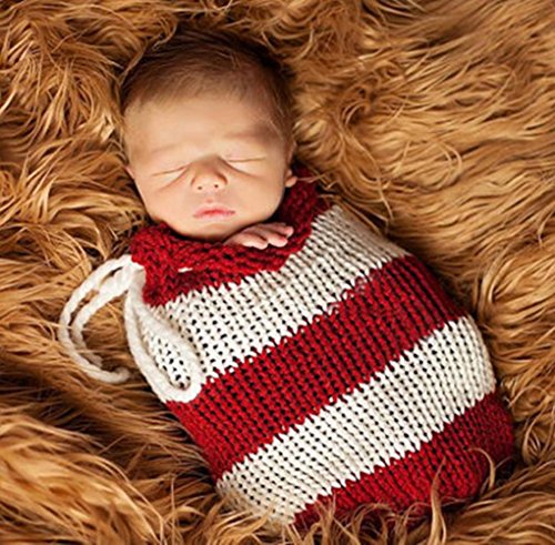 新生児の赤ちゃんかぎ針編みのニット写真の小道具の衣装衣装寝袋ぬいぐるみ毛布 (レッド&ホワイト)