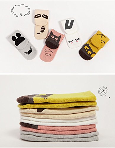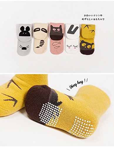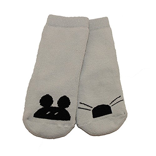 ベビー 赤ちゃん 靴下 滑り止め 秋 冬 暖かい ソフト コットン 吸汗防臭 ソックス 靴下 かわいいパターン パターン非対称 綿 フロア ソックス (S(0-1歳), グレー小ねずみ)