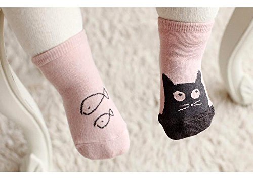 ベビー 赤ちゃん 靴下 滑り止め 秋 冬 暖かい ソフト コットン 吸汗防臭 ソックス 靴下 かわいいパターン パターン非対称 綿 フロア ソックス (S(0-1歳), ピンク にゃっこう)