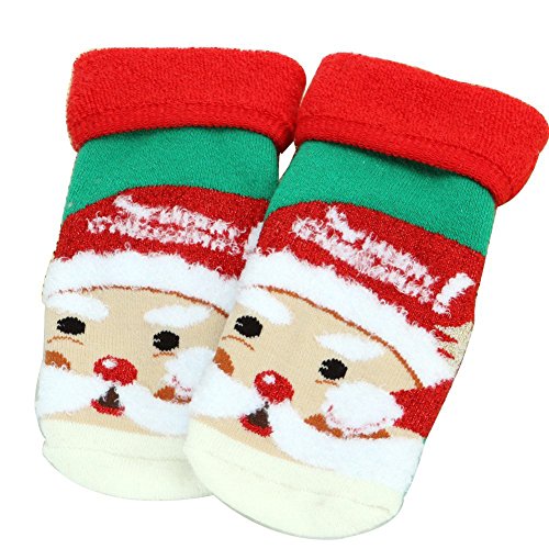 秋冬 子供 ベビー クリスマス綿靴下 男女共用コーマ綿の ソックス 厚いテリークリスマス 靴下 子供を温め (L(3-5歳), サンタクロース)