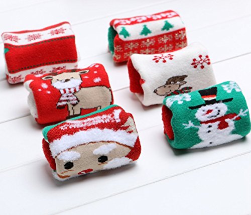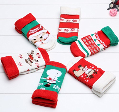 秋冬 子供 ベビー クリスマス綿靴下 男女共用コーマ綿の ソックス 厚いテリークリスマス 靴下 子供を温め (M(1-3歳), 雪片)